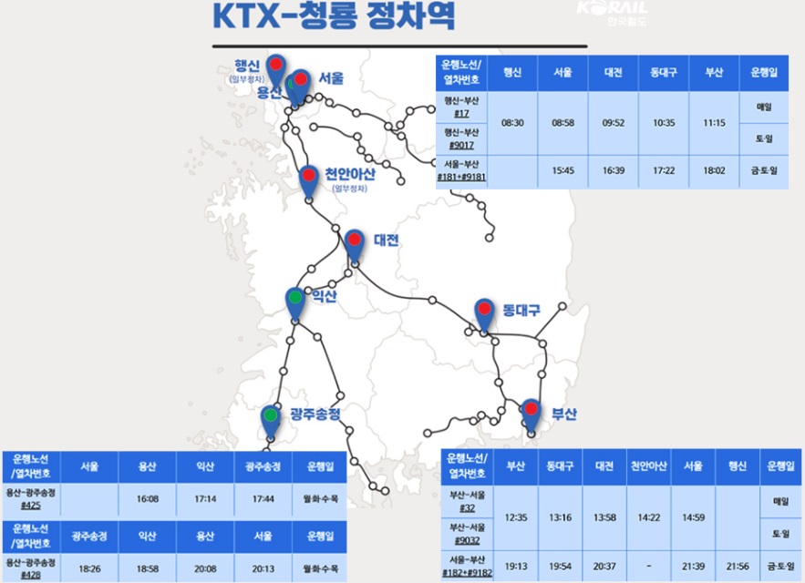 KTX청룡 노선과 시간표