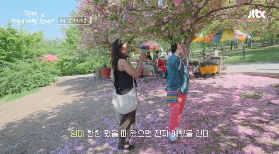 <엄마 단둘이 여행갈래> 3화에서는 벚꽃 아래서 사진도 찍고 숙소에서 엄마와 같이 식사를 하며 눈물을 보이기도 했던 일들이 방송되었습니다.